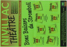 Les Soirées Nivillacoises présentent "Bons Baisers du Stromboli" Réservation à la salle du Docteur Picaud les mercredis et vendredis du 5 au 28 janvier de 15h30 à 18h30 Tel: 06 44 77 08 17 aux heures de permanence Port du masque et pass sanitaire obligatoires