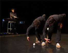 Mouvement jonglé - Dès 4 ans Ce duo intimiste évolue dans le mouvement jonglé, physiquement engagé, qui interroge la complexité des rapports humains. Expression à quatre bras, quatre jambes, dessinant entre terre et ciel une chorégraphie animée de jeux où passe le souffle de la magie et de l’humour.