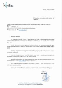 Vous êtes ici : Accueil / Page d'accueil / Projet d’implantation d’une antenne relais téléphonique à Coëtqueul / Courrier aux riverains – Rayon de 500 m à partir de l’antenne